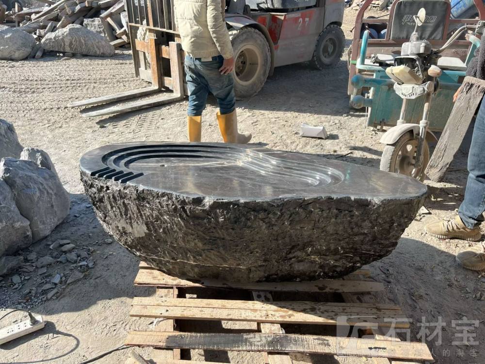 石材宝 宝天园林景观石 产品展示 黑山石 黑山石水钵